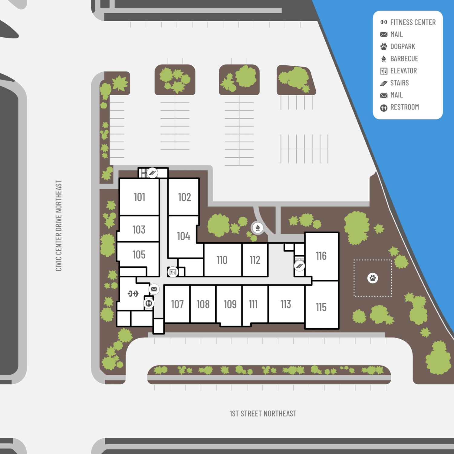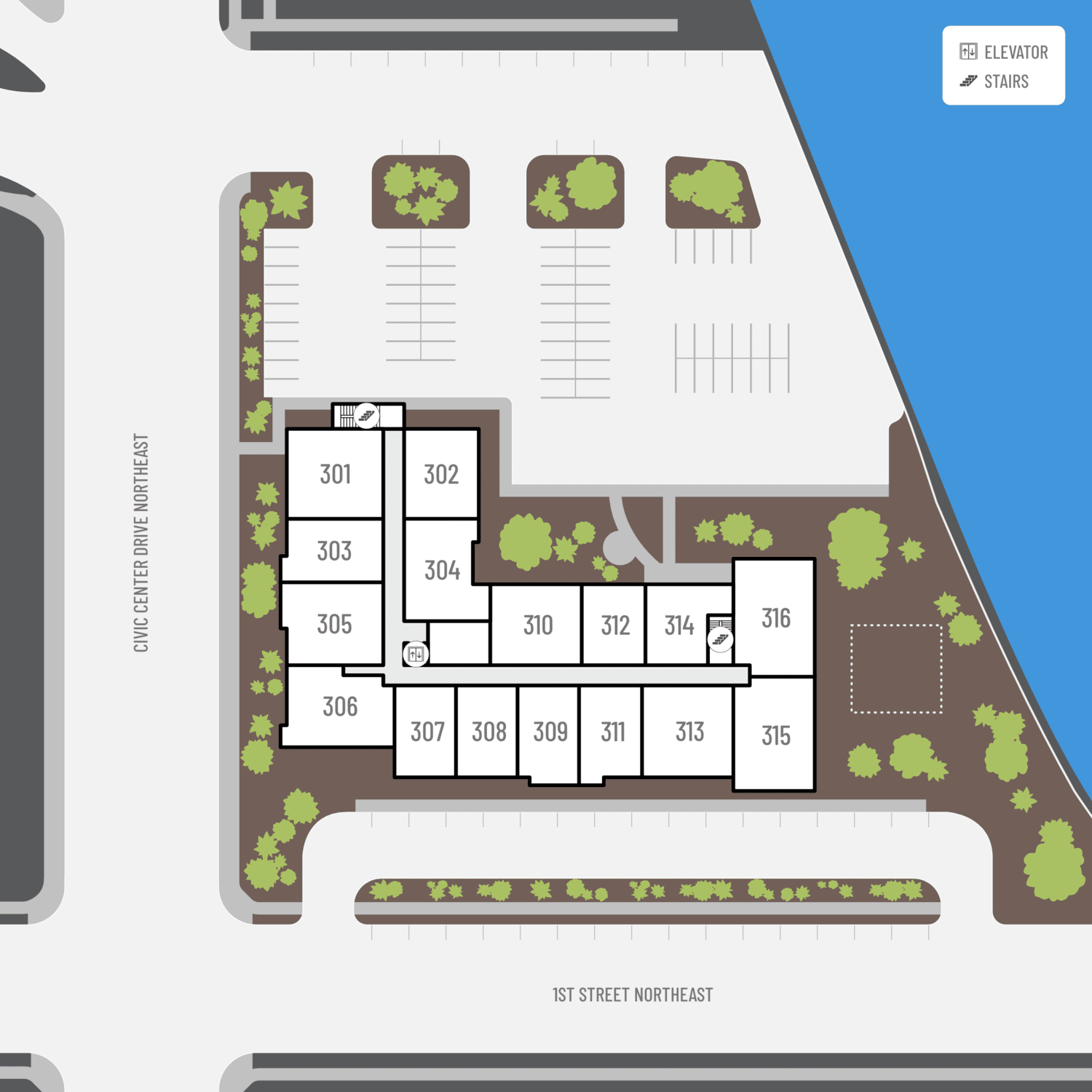 Select a floor plan or bedroom count to view those units on the overhead view on the site map. If you need assistance finding a unit in a specific location please call us at 507-218-2071 TTY: 711.